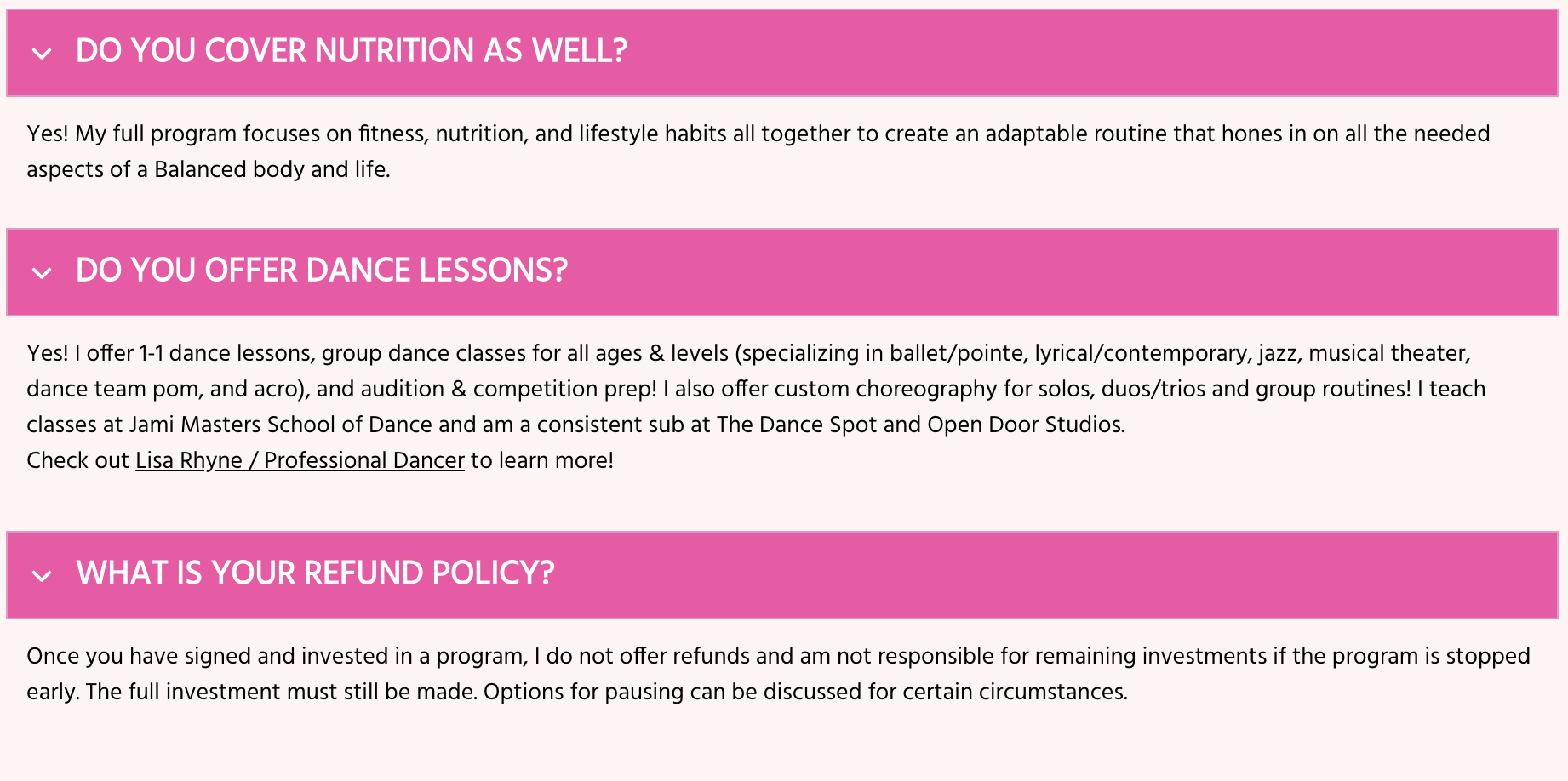 "Working with Lisa has been a game-changer for me! Her dedication is unmatched-Lisa truly listens to my goals, concerns, and feedback, and tailors ever session to help me grow stronger, both physically and mentally. What sets Lisa apart is her ability to motivate without pressure; every workout leaves me feeling empowered and accomplished. Beyond the workouts, Lisa goes the extra mile by sending out weekly newsletters packed with valuable tips, nutrition advice, and encouragement. It's clear that Lisa genuinely cares about her client's overall well-being. I'm incredibly grateful to have found such a knowledgeable, supportive, and inspiring trainer, thank you Lisa!"
